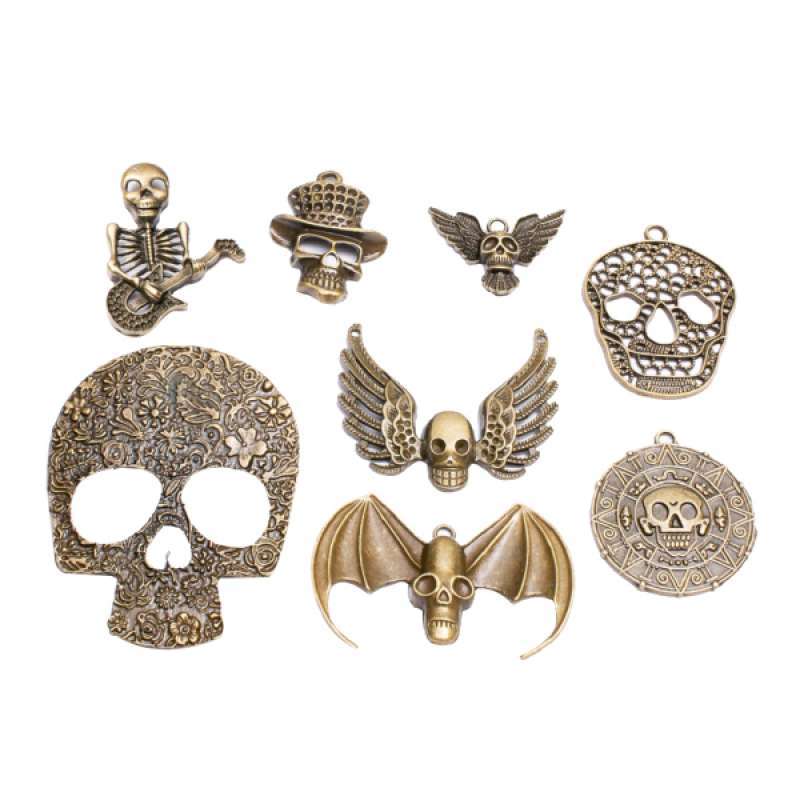 Jual Oem Vintage Skull Charms Dangle Beads Pendants For Bracelet Jewelry Making 8 Pieces Online April 2021 Blibli