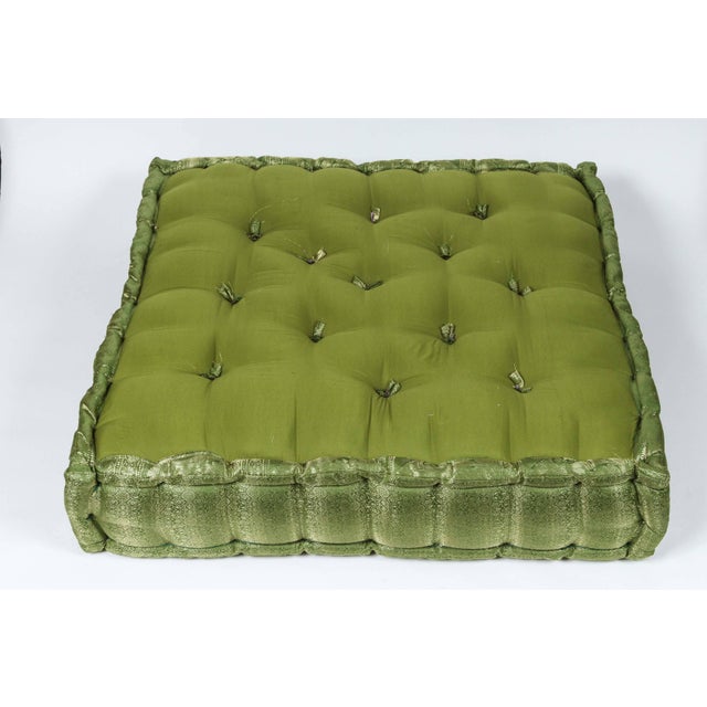 Late 20th Century Vintage Oversized Silk Square Green Tufted Moroccan Floor Cushion Chairish
